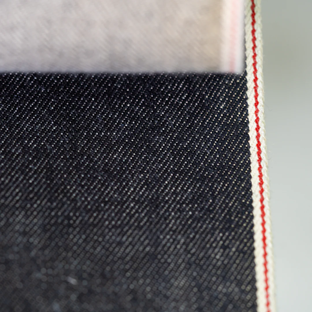 Selvedgedenim vävs på skyttelvävstolar där inslaget löper kontinuerligt och skapar en självstängande kant längs tygets långsidor. Det ger en tätare vävstruktur och ett hållbarare tyg än modern bredvävd denim. Japan har bevarat den här tekniken och förfinat den under decennier, vilket syns i precision och kvalitet som inte går att kopiera med moderna metoder.