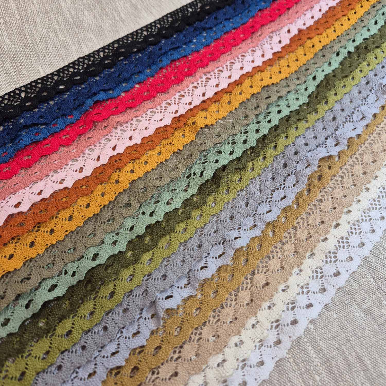 Spetsen kan användas för dekoration och kantning av kläder, accessoarer eller heminredning. Materialet är lätt att hantera och kan tvättas vid behov.