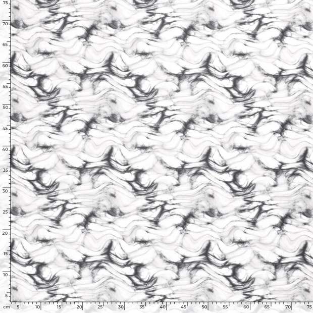 Detta högkvalitativa tyg är tillverkat av 85% polyester och 15% elastan, och har en bredd på 150 cm. Med en vikt på 240 g/m² är det både slitstarkt och stretchigt, vilket gör det idealiskt för aktiva plagg. Det eleganta svartvita marmormönstret ger en sofistikerad och modern look till dina kreationer.