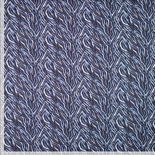 A knitted jacquard with print reminiscent of zebra motif. This fabric is sustainably made of 50% recycled cotton, 37% recycled polyester, 10% lurex and 3% elastane, according to OEKO-tex standard 100. The fabric is 155 cm wide and 240 gr/m2.