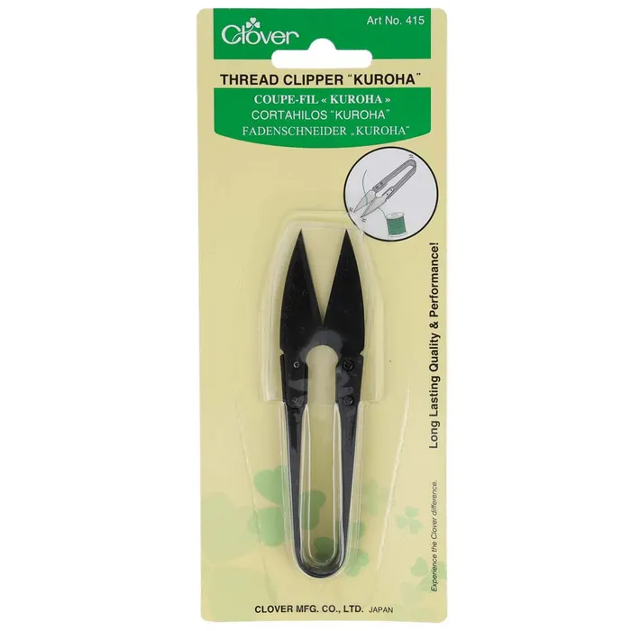 En liten, lätt och mycket vass trådklippare från Clover som är oumbärlig i sy- och broderlådan. Bladen i härdat kolstål skär nära tyget utan att skada materialet och den kompakta formen gör den smidig att använda vid trådklipp vid sömnad, broderiarbete, stickning och virkning. Perfekt att hålla när du syr vid symaskin eller overlock för snabb trådavklippning.