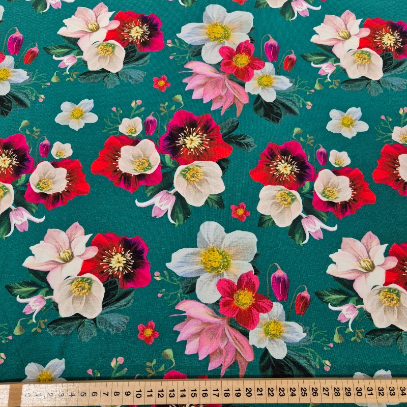 Med en extra bredd på hela 180 cm (+/- 2 cm) får du betydligt mer material jämfört med standardtyger som vanligtvis är 140–150 cm breda. Detta gör tyget extra prisvärt och praktiskt för större projekt. Med en vikt på 200-220 g/m² är det slitstarkt och passar utmärkt för både vardagsplagg och kreativa projekt.