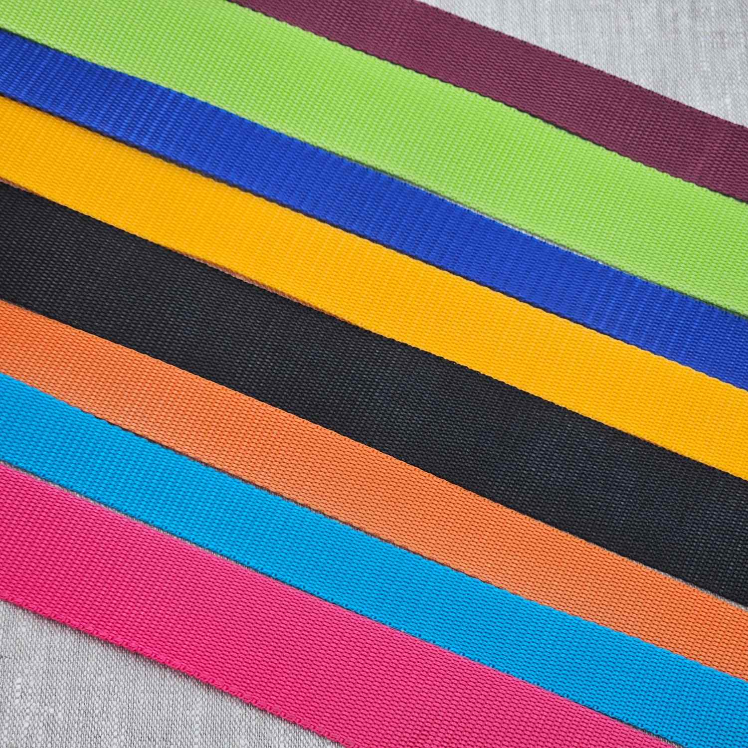 Väskband i Polyester är ett kraftigt syntetband som är idealiskt för en mängd användningsområden, såsom remmar på väskor, skärp och hundhalsband. Bandet är tillverkat av 100% polyester och finns i flera bredder: 25, 30, 40 och 50 mm, vilket gör det enkelt att hitta rätt storlek för dina projekt. Det slitstarka materialet gör det populärt för både mode- och funktionella tillämpningar.