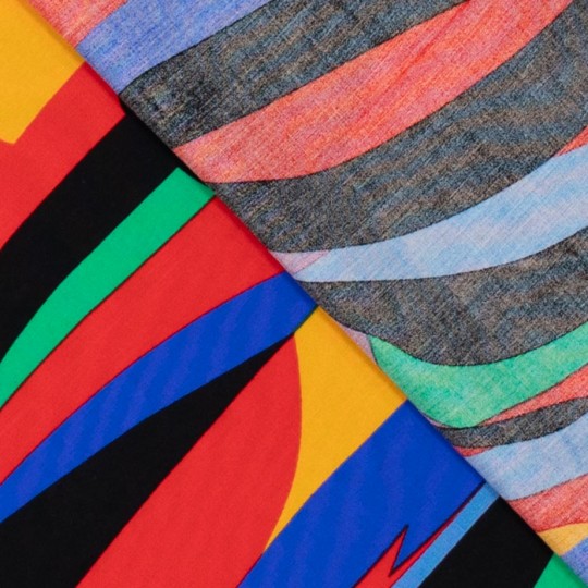 Detta vävda tyg med ett abstrakt tryck är hållbart tillverkat enligt OEKO-TEX Standard 100 och består av 100 % viskos. Tyget väger 100 g/m2 och är 140 cm brett.